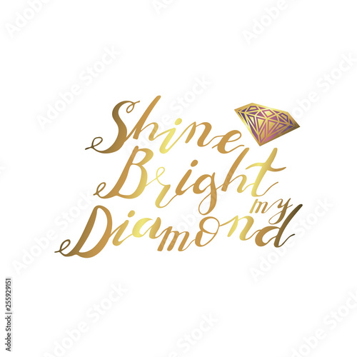 Obraz premium Hand lettering phrase shine bright my diamond in gold isolated on white...