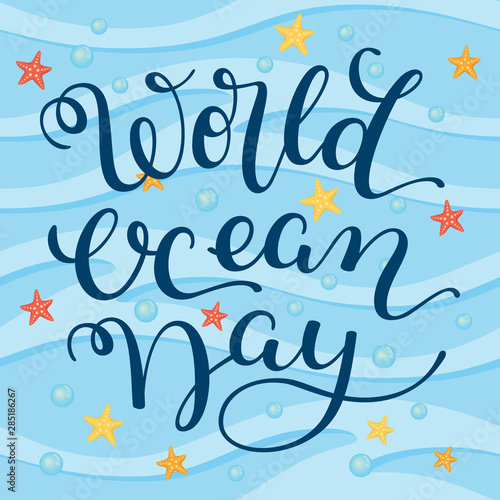© Maria, Obraz premium Hand lettering World Ocean Day. Template for card, poster, print.