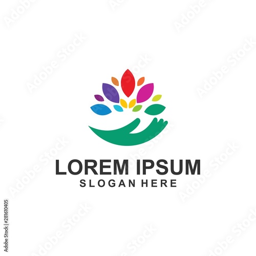 © Andreflamboyan, Obraz premium hand logo template tree leaf design vector nature