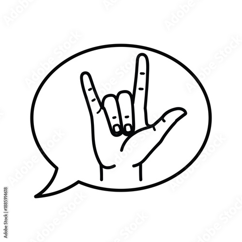 Fototapeta premium Hand making rock on gesture inside a speech bubble, symbolizing music, fun, and expression
