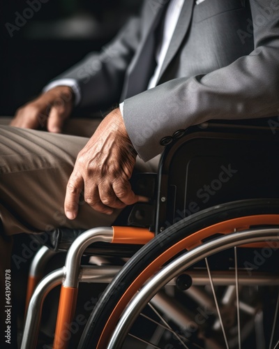 © Fotograf, Obraz premium Hand of a man in a wheelchair.