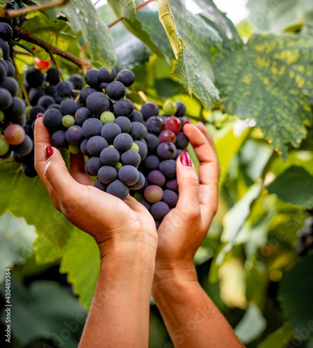 © Lucas, Obraz premium hand of young woman picking the grapes from the vineyard in the valley of the vineyards brazil
