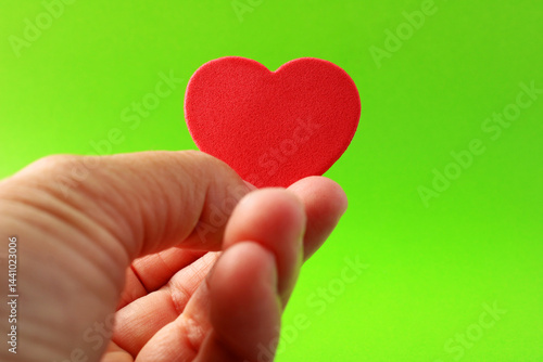 © Myrarte, Fototapeta premium Hand offering a red heart