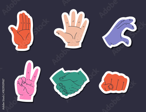 Fototapeta premium Hand ok thumb finger up gesture retro sign isolated set. Vector flat graphic...