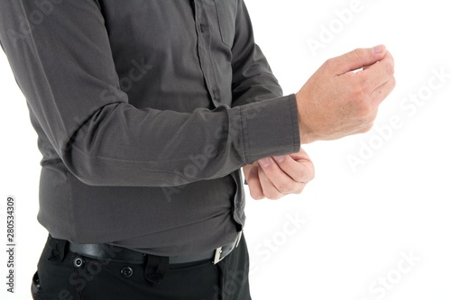© Paisan, Obraz premium Hand organizing sleeve of shirt isolated on white background