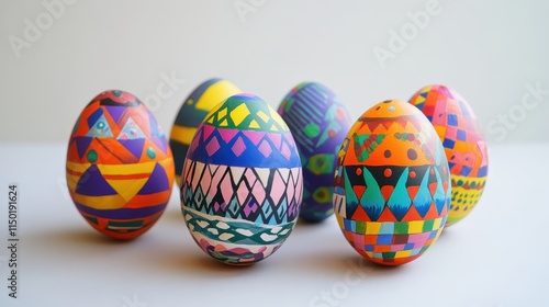 Fototapeta premium Hand-painted Easter egg designs with bold geometric patterns, vibrant colors,...