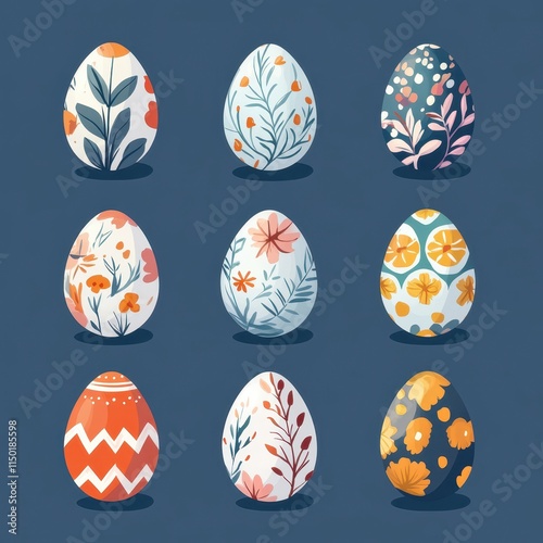 Fototapeta premium Hand-painted Easter eggs, intricate designs, flat design illustration