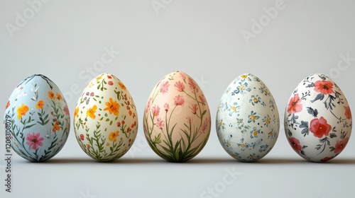 © Fortune228, Fototapeta premium Hand painted easter eggs with floral designs on display for easter celebration