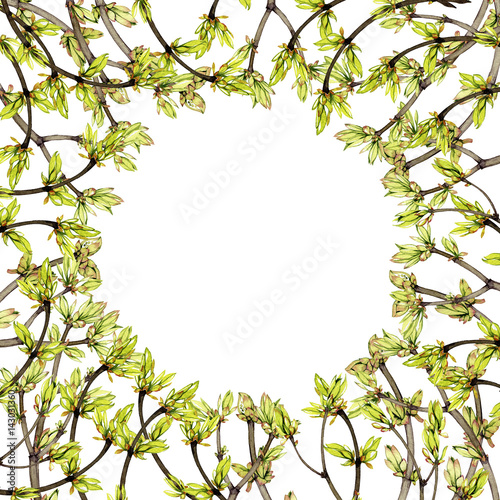 Naklejka premium hand painted watercolor branches with young leaves and buds on white background
