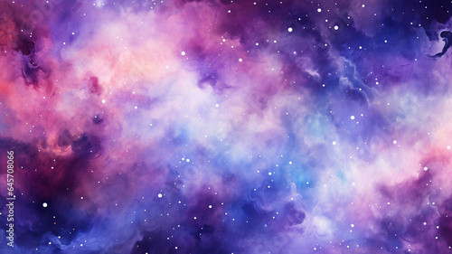 © BoszyArtis, Naklejka premium Hand painted watercolor galaxy background. Genarative AI
