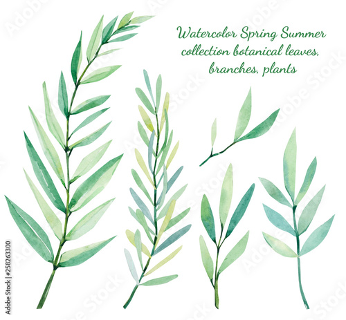 Fototapeta premium Hand painted watercolor Spring Summer collection botanical leaves, branches, plants