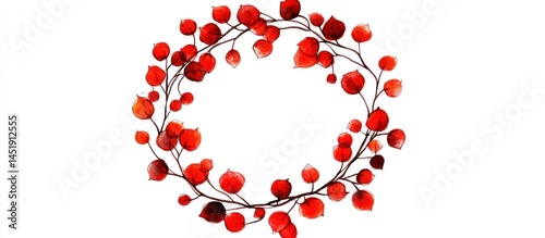 © yasna , Obraz premium Hand-painted watercolor wreath with vibrant red berries on delicate branches