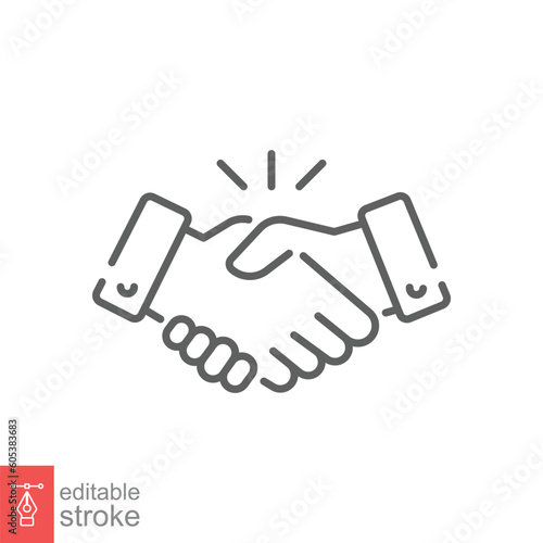 © Fourdoty, Fototapeta premium Hand shake icon. Simple outline style. Handshake, partnership, introduction, agreement, business concept. Thin line symbol. Vector illustration isolated on white background. Editable stroke EPS 10.
