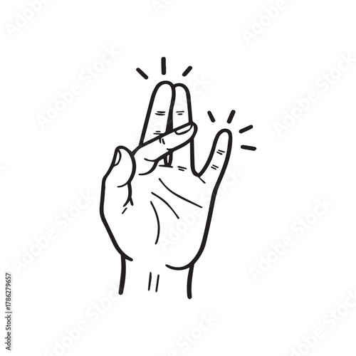 Fototapeta premium Hand snapping fingers with radiating lines, isolated on white