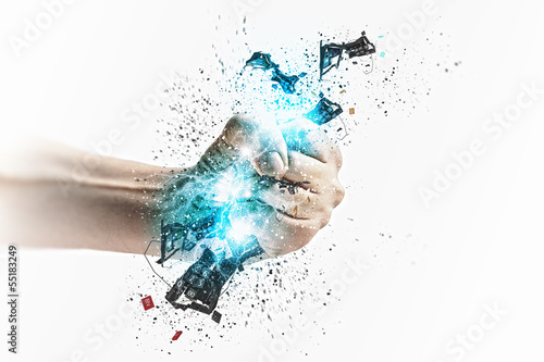 © Sergey Nivens, Fototapeta premium Hand squeezing keyboard