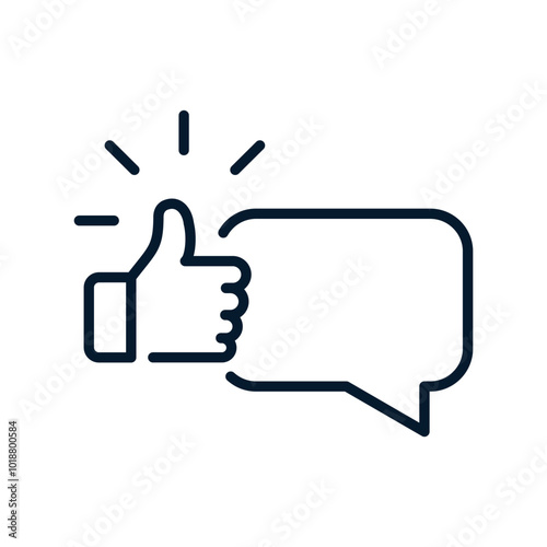 Fototapeta premium Hand thumb up, message. Positive comment concept. Vector linear icon isolated...