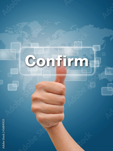 © zmkstudio, Fototapeta premium Hand thumb up on confirm button
