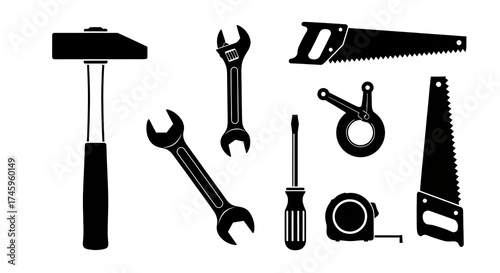 © Raka, Fototapeta premium Hand tools silhouette collection on white