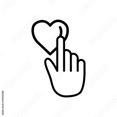 Obraz premium hand touch line icon with heart. charity symbol, donation, humanity. Editable stroke. Design template vector
