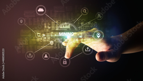 © ra2 studio, Naklejka premium Hand touching cybersecurity button