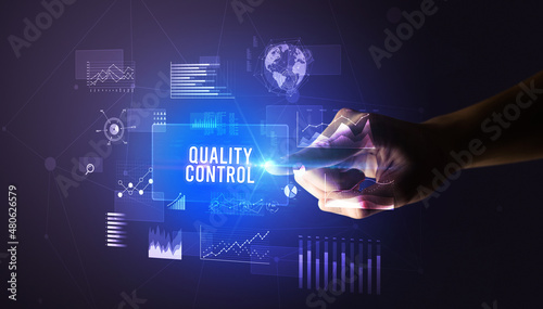 © ra2 studio, Fototapeta premium hand touching digital button, modern technology concept