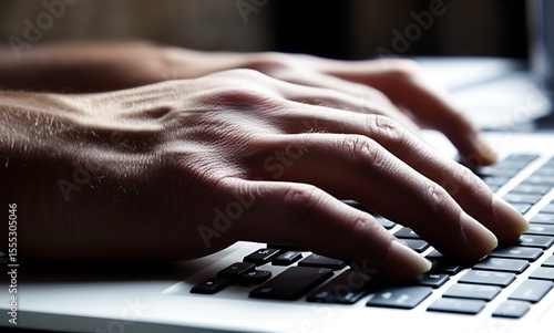© Olena, Fototapeta premium Hand turning werewolf paw typing on laptop