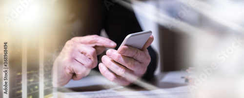 © thodonal, Obraz premium Hand using mobile phone; multiple exposure
