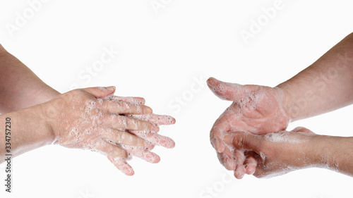 © BarTa, Fototapeta premium Hand washing as protection against viruses and bacteria.