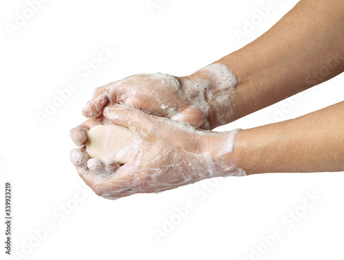 Fototapeta premium hand washing soap hygiene clean virus edpidemic disease corona flue bathroom...