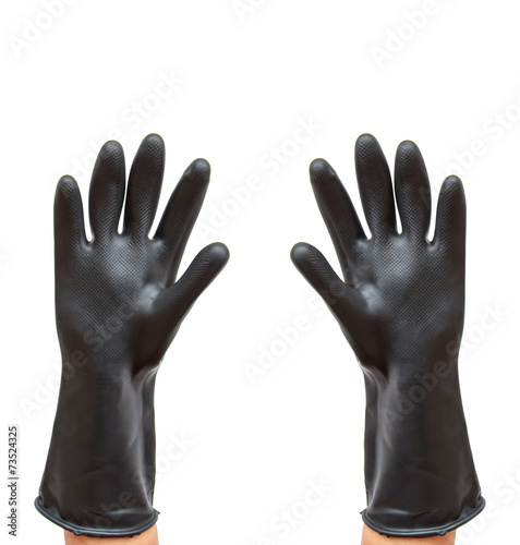 Fototapeta premium Hand wear plastic glove isolated on white background