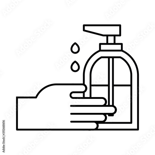 Fototapeta premium hand with antibacterial soap bottle line icon