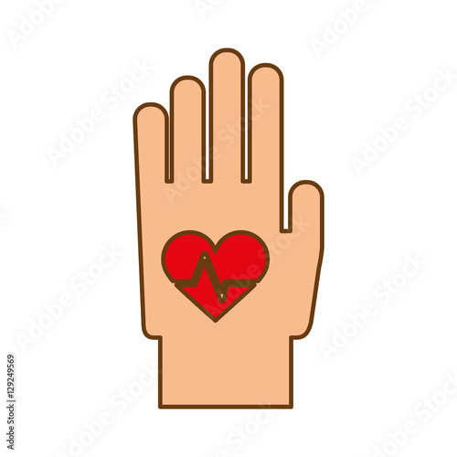© djvstock, Obraz premium hand with cardio heart icon over white background. colorful design. vector illustration