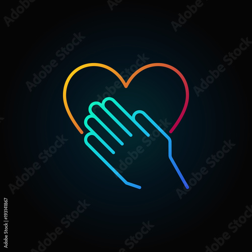 © tentacula, Obraz premium Hand with heart bright vector outline icon