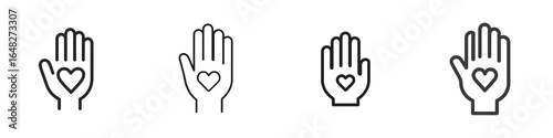 Fototapeta premium Hand with Heart Icon Set: Charity, Love, and Care Art