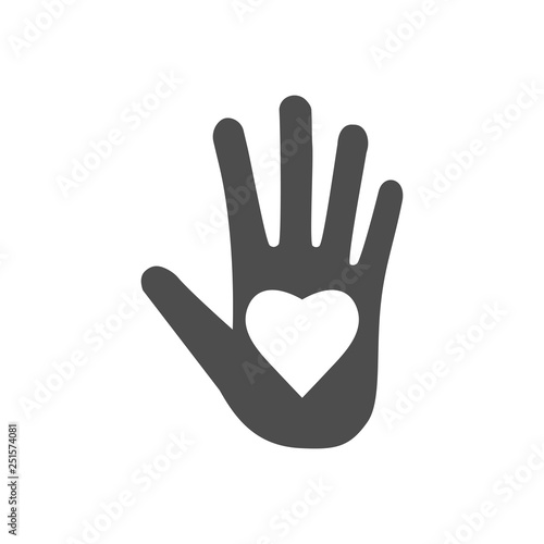 © GlopHetr, Obraz premium Hand with heart icon. Vector illustration, flat design.