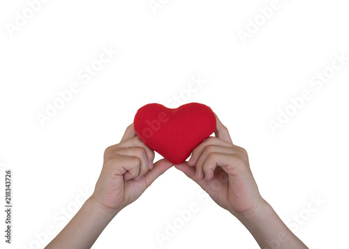 © phuangphech, Fototapeta premium Hand with heart red on white background.
