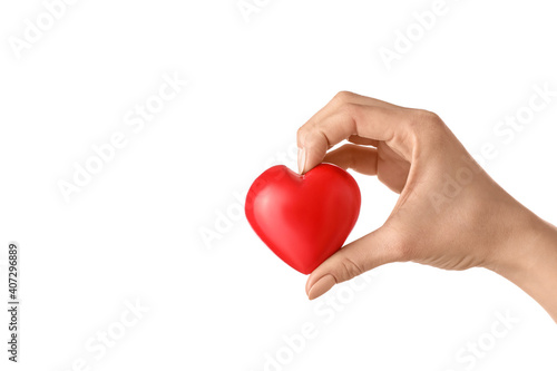 © Pixel-Shot, Obraz premium Hand with red heart on white background