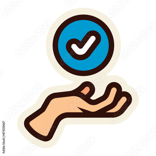 Fototapeta premium hand with round circle check mark sign sticker