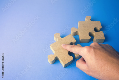 © issaronow, Fototapeta premium hand with wood jigsaw
