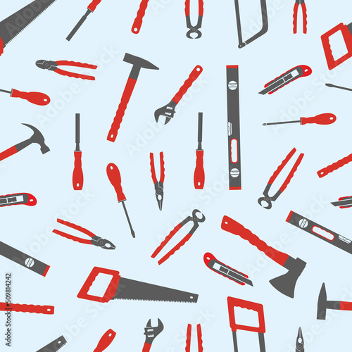 Fototapeta premium Hand working tools. Seamless pattern. Hand-held working tools set. Repair...