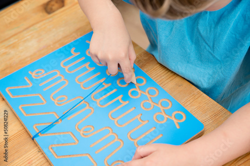 Obraz premium Hand writing training board. Children home activity. Early education, fine...