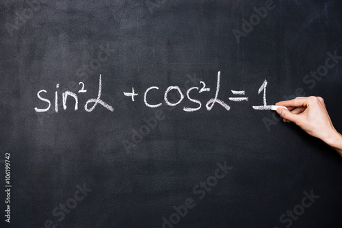 Fototapeta premium Hand writing trigonometry formula on blackboard