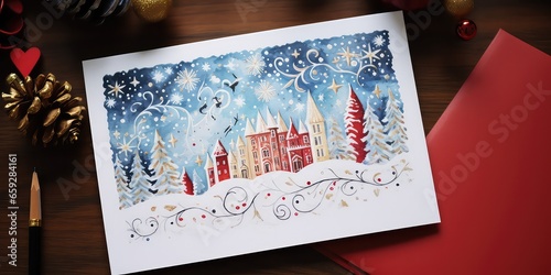 Obraz premium Hand written Christmas card a gift for celebration.