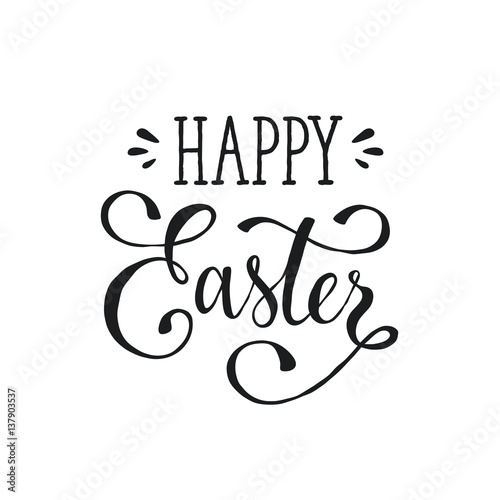 Naklejka premium Hand written Easter phrase. Greeting card text template isolated on white background. Happy easter lettering in hand drawn calligraphy style.
