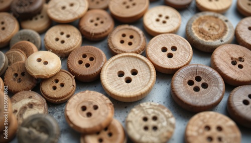 Obraz premium Handcrafted Wooden Buttons for Sewing and Design Inspiration