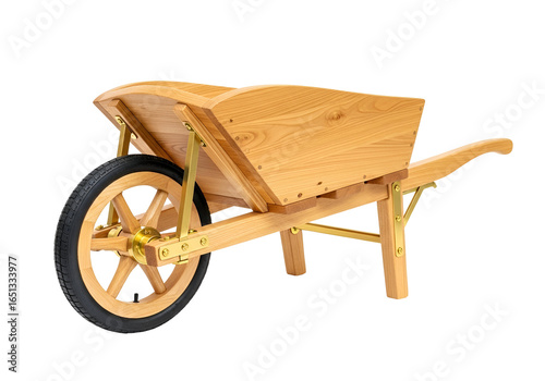 © Muhamad, Fototapeta premium Handcrafted wooden wheelbarrow with a sturdy design and natural wood finish for gardening and