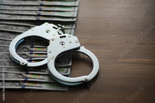 Obraz premium Handcuffs on Stacked US Dollar Bills Symbolizing Financial Crime and Law...