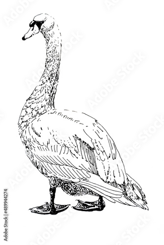 Obraz premium Handdrawn illustration of swan, black ink pen