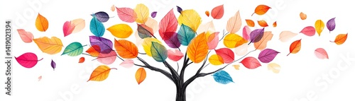 © Itsaree , Obraz premium Handdrawn Thanksgiving tree with vibrant paper leaves, family writing their gratitude on each leaf, joyful, heartfelt expressions, isolated on a white background
