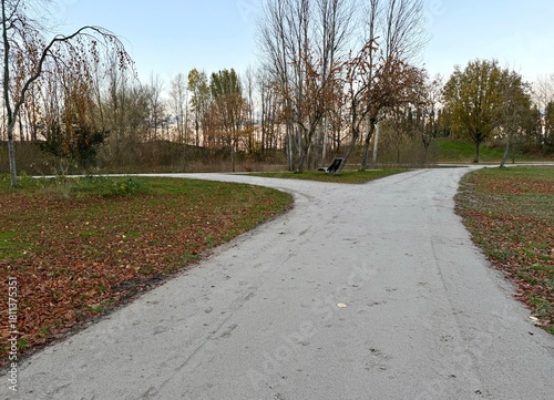 Fototapeta premium Handewitt, Germany. New walking path for people at Buerger park